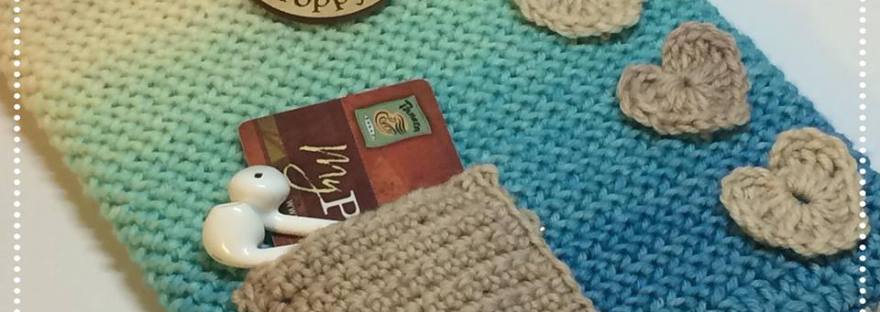 Repeat row 2 until you have 14 rows. Fasten leaving a long tail for sewing. Place pocket on cozy and sew around the 3 edges.