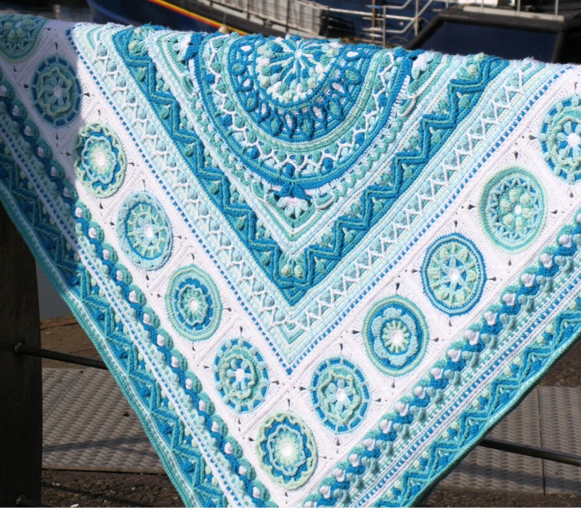 Emma Aldous very cleverly put together beauty pieces from Lilla Bjorn and Dedri Uys to create a super stunning blanket full of texture, color and intricate stitches.